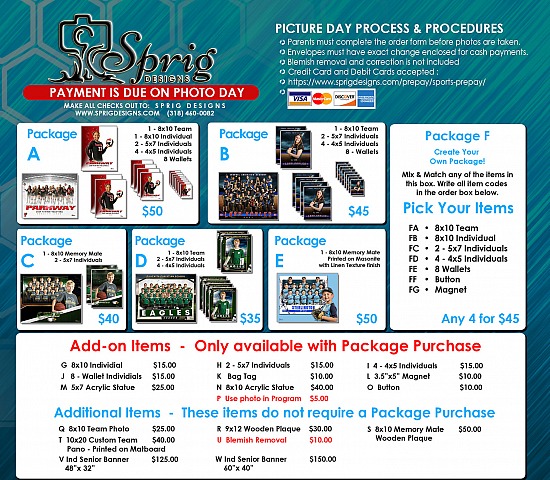 If you are ordering Package F, please note the options you would like in the "Additional Information" box below.